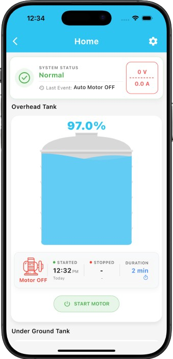 Water is a precious resource for all living things on our mother planet. Treating water in the right way is the responsibility of every human being. “AALROOT Smart Tank” product is invented to help people to manage their water source almost with no effort. Customers can enjoy automatic pump ON and OFF based on tank level. Customers can also monitor live water tank level through the application and, he/she can do manual pump ON/OFF from anywhere in the world